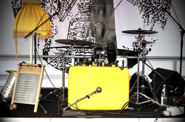 ist diese Kofferbassdrum für deren unplugged Gigs gebaut worden.
