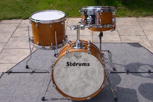Onze taak was het om een “klein” drumset met een “grote” klank te ontwikkelen. De drummer Stefan Lammert had een allround-set nodig, goed klinkend en makkelijk te transporteren. Hij speelt in vaak wisselende bezettingen en is vaste drummer van de Theaters van Bonn en Oberhausen. Om te waarborgen dat het set vlug op te zetten en af te breken zou zijn testten wij bassdrums in verschillende maten en van verschillende soorten hout. Het resultaat is een drumset voor veel spelende drummers met een overvolle agenda: