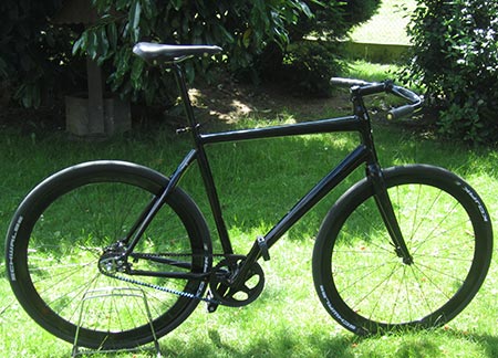 Lack : Pulverbschichtung aller Teile bis auf die Naben und die Gabel in RAL 9005 Farbe glanz