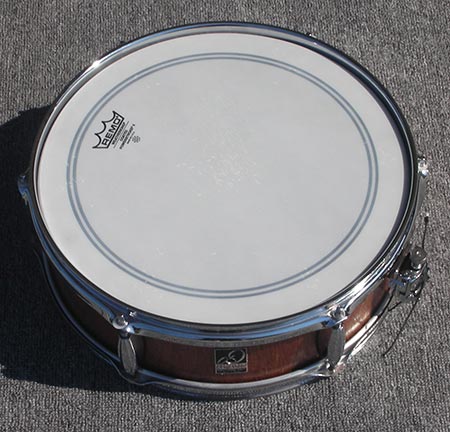 eine modifizierte neu aufgebaute Snare mit einem Mahagony - Kessel aus den 60 zigern Drum mate, diese Kessel wurden sowohl bei Star / Bolero / Drum mate (die Firmen aus denen Tama entstand) verwendet.