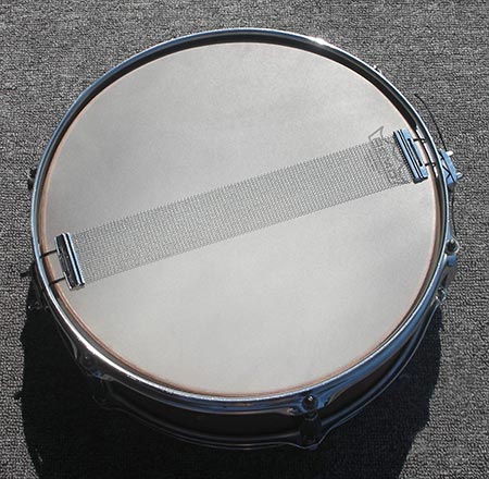 Das Schlagfell ist ein Remo Powerstroke 3 white coated (damit hat die Snare nicht zuviele Obertöne und kann bei reichlich Stilarten gut eingesetzt werden und klingt immernoch sehr individuel)